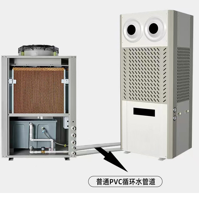 原理:以水為冷媒,將室外空氣處理成冷空氣后導入室內,實現降溫通風。