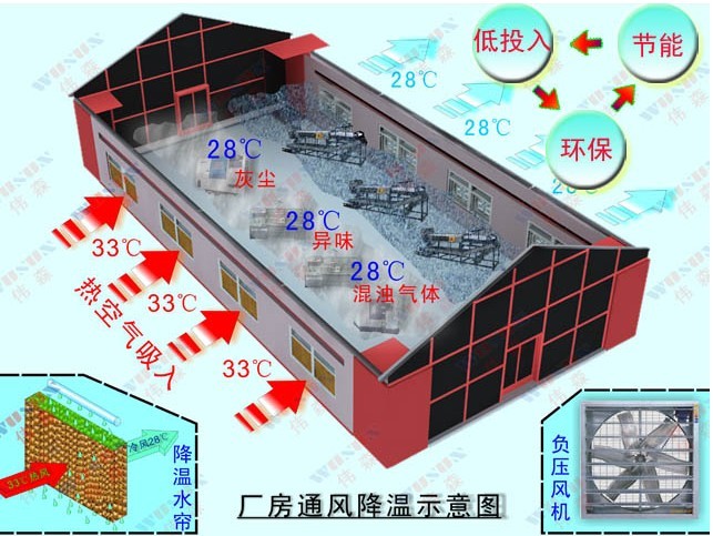 夏天即將到來,廠房降溫通風(fēng)是很重要的,在選擇降溫通風(fēng)方案時(shí),節(jié)能是一個(gè)重要的考慮因素。蒸發(fā)式環(huán)保節(jié)能空調(diào)又名負(fù)壓式降溫系統(tǒng),相比傳統(tǒng)中央空調(diào)投入低,運(yùn)行成本也低,因此非常適用于養(yǎng)殖業(yè)如養(yǎng)豬場(chǎng)、養(yǎng)牛場(chǎng)、養(yǎng)雞場(chǎng);工業(yè)如制衣廠、塑膠廠、鞋廠等等。