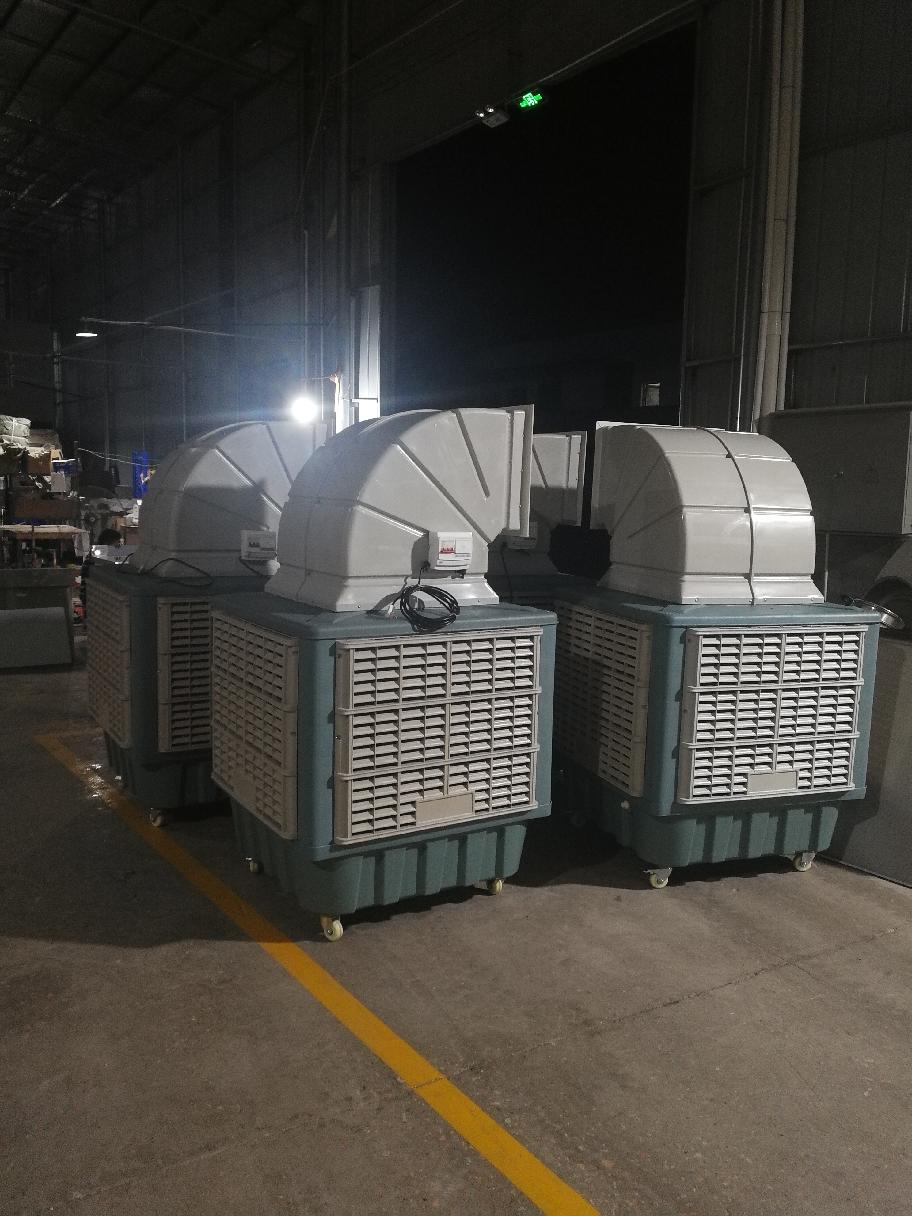 車間通風散熱設(shè)備韶關(guān)冷風機通風降溫的效果非常強大,投入成本又比一般降溫設(shè)備要小,所以許多企業(yè)里工業(yè)冷風機都非常盛行,在沿海工業(yè)區(qū)都可以看到工業(yè)冷風機的身影。冷風機是利用水的自然蒸發(fā)方式對空氣進行去熱加濕的冷卻,集結(jié)降溫、通風、防塵、除味等多種功能。